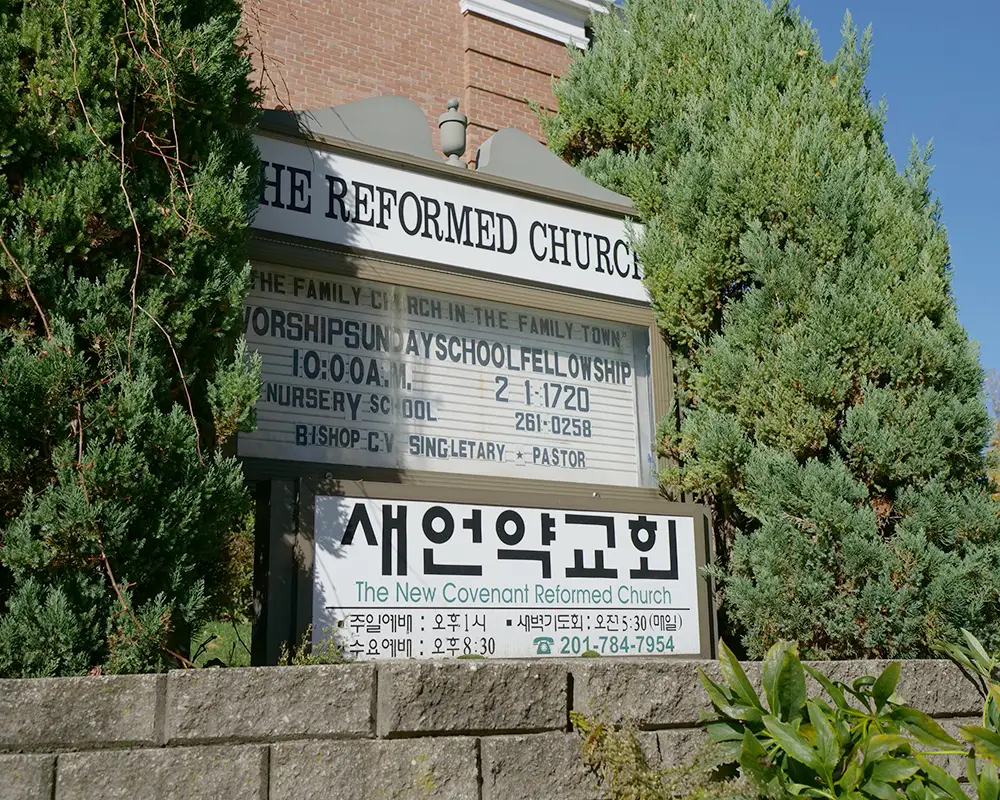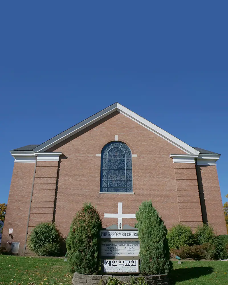본 교회는 미국개혁장로회 (Reformed Church in America) The Greater Palisades 노회(NJ)에 소속되어 있으며, 본 교단(RCA)의 뿌리는 네델란드 개혁 교(Dutch Reforred Church) 에 있다. 네델란드 개혁교는 1566년에 조직되었으며, 1623년에 청교도들의 이민 물결에 따라 신대륙으로 건너 왔고, 미국에서는 1628년에 뉴욕에 세워진 교단 최초의 교회인 Marble Collegiate Church (Rev. Norman Vincent Peale 가 52 년간 목회)를 위시하여, 세계에서 가장 유명한 교회중 하나인 Rev. Robert Schuller 목사의 수정 교회 (Crystal Cathedral in Garden Grove, CA. – Rev. Robert Schuller) 등, 현재 모두 미국과 캐나다에 970 교회와 1800 여명의 목사와 함께 약 20 만명의 등록된 세례교인을 가지고 있다. 한인 교회들로써는, 미 동북부에 25 교회, 미 전역에 도합 50 여개 정도의 교회가 있다.